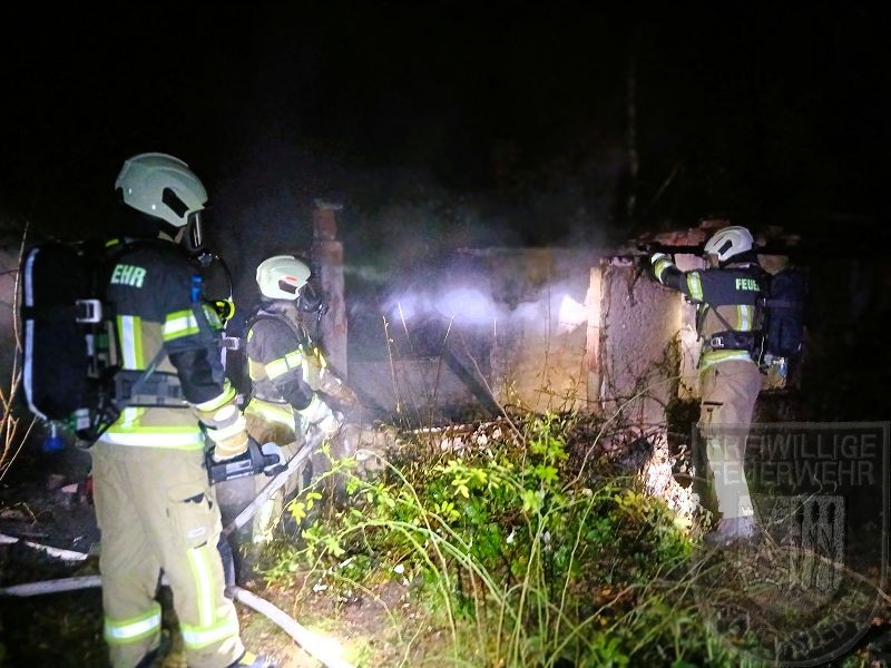 Unverzüglich wurde ein Löschangriff eingeleitet. Ein Trupp unter Atemschutz nahm die Brandbekämpfung am kleineren Schuppen vor. An diesen war ein Hühnerstall angebaut, der erfolgreich vor den Flammen geschützt werden konnte. Ein weiterer Trupp bekämpfte den Brand des größeren Schuppens. Die Löschwasserversorgung wurde über einen rund 100 Meter entfernten Hydranten sichergestellt.
