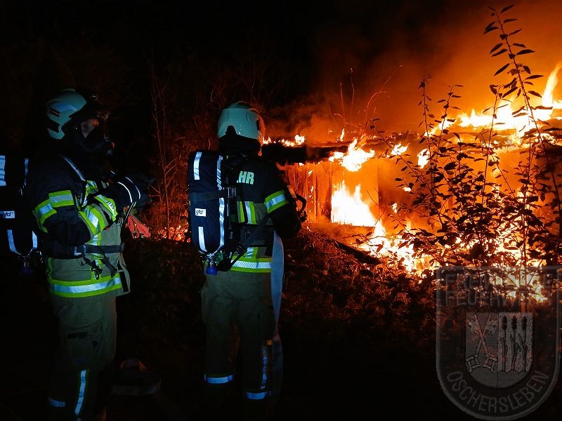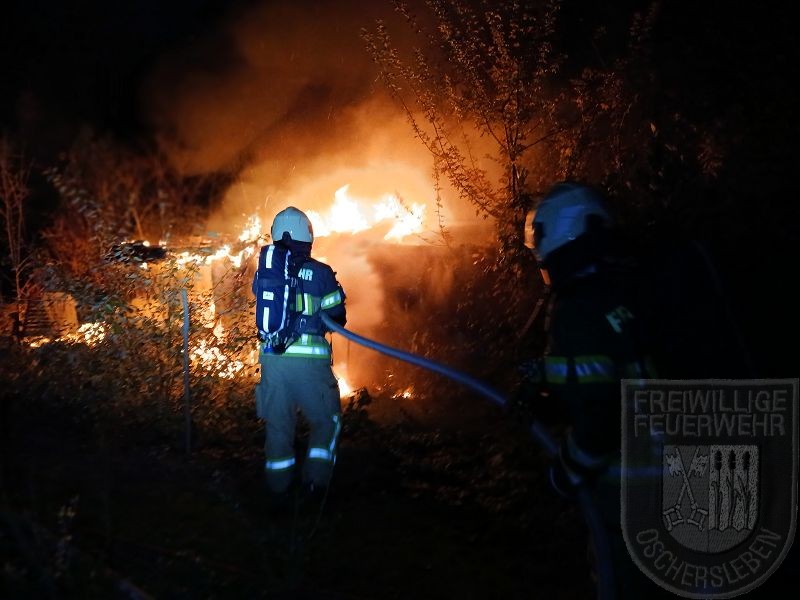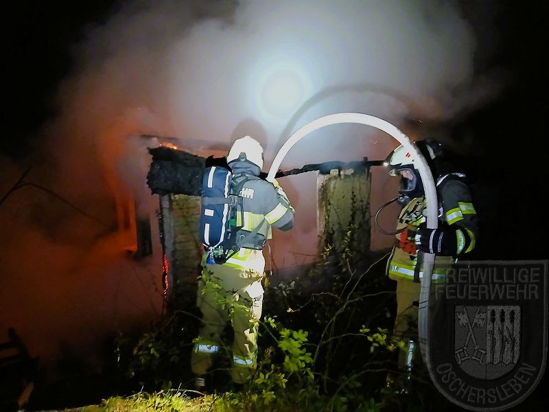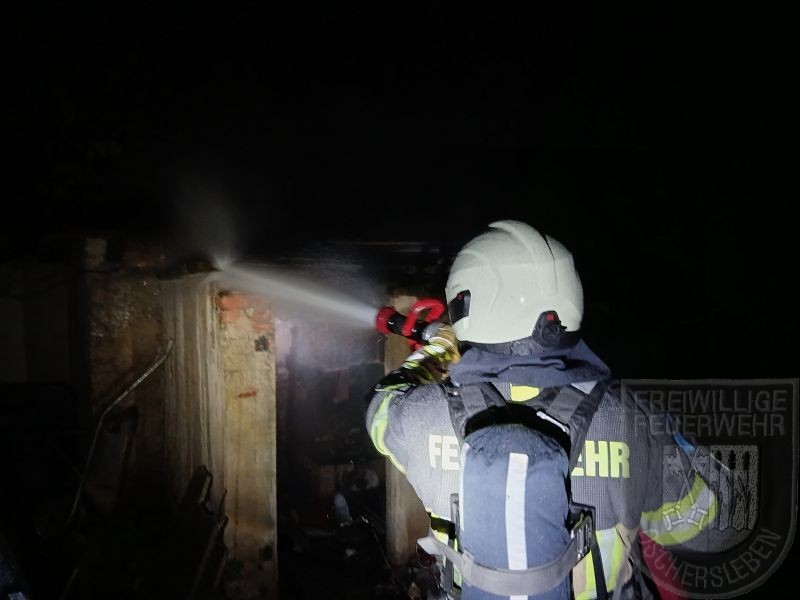 Aufgrund der neuen Situation wurde zusätzlich die Feuerwehr Hornhausen nachalarmiert. Durch das schnelle Eingreifen konnte eine Brandausbreitung auf benachbarte Garagen verhindert werden. Gegen 2:30 Uhr waren sämtliche Löschmaßnahmen beendet. Verletzt wurde niemand.