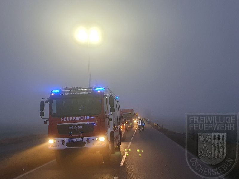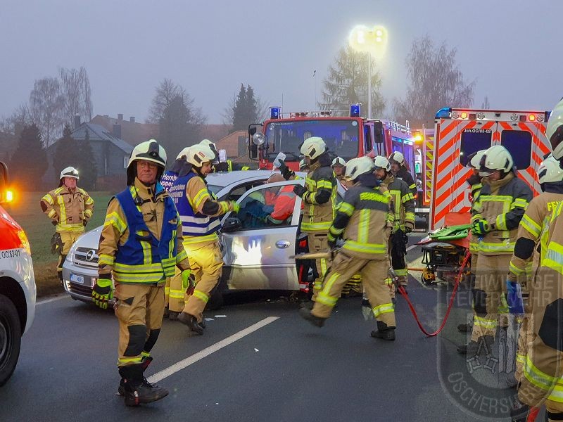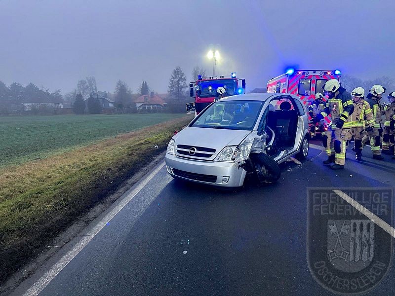 Um 15:41 Uhr wurden die Feuerwehren Oschersleben und Hornhausen, der Rettungsdienst sowie die Polizei mit dem Einsatzstichwort „Verkehrsunfall mit eingeklemmter Person“ alarmiert. Vor Ort bestätigte sich die Lage. Eine weibliche Person befand sich beim Eintreffen der Einsatzkräfte noch in ihrem Fahrzeug und wurde umgehend durch den Rettungsdienst medizinisch versorgt.