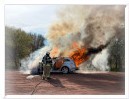 Beim Eintreffen der Einsatzkräfte stand das Fahrzeug bereits in Vollbrand. Unter Atemschutz leitete die Feuerwehr umgehend die Löscharbeiten ein. Neben Wasser kam auch Schaummittel zum Einsatz. Personen befanden sich nicht im Fahrzeug.