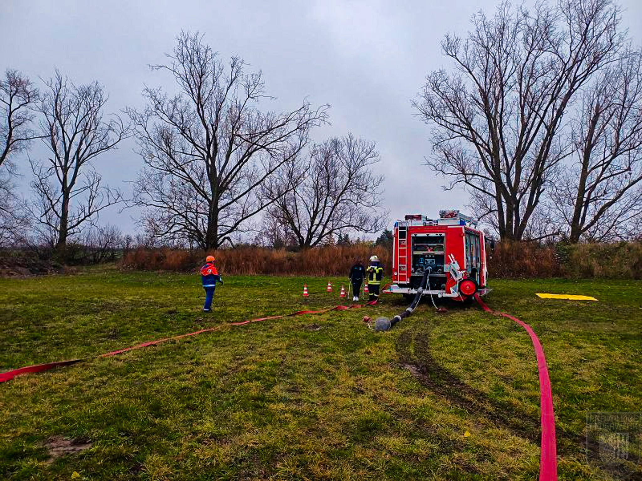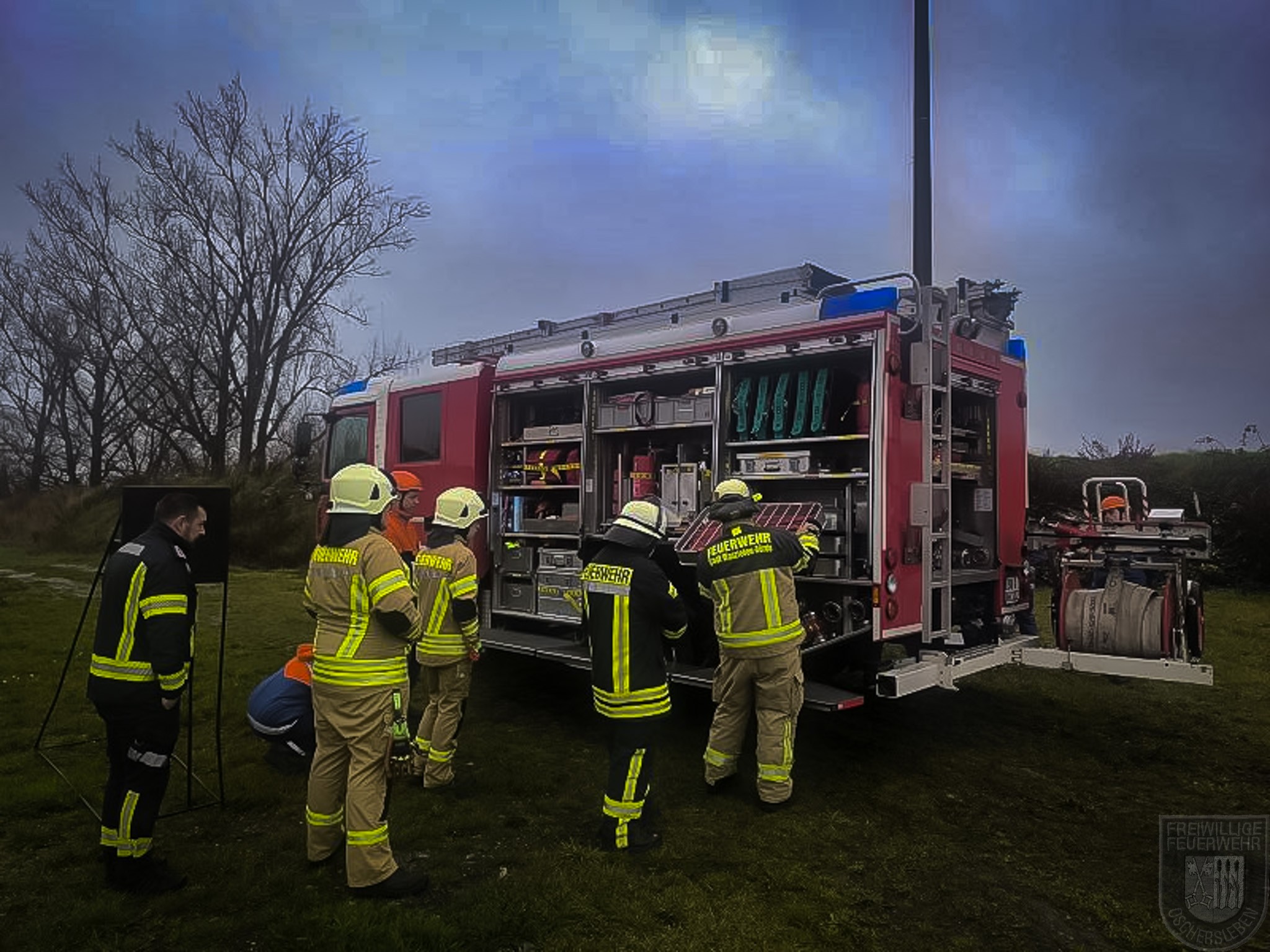 Nach einem schriftlichen Test mussten die Teilnehmenden auch ihre praktischen Fähigkeiten unter Beweis stellen. So galt es unter anderem, einen Löschangriff mit der Wasserentnahmestelle „offenes Gewässer“ sowie einen „Schaumangriff“ aufzubauen.