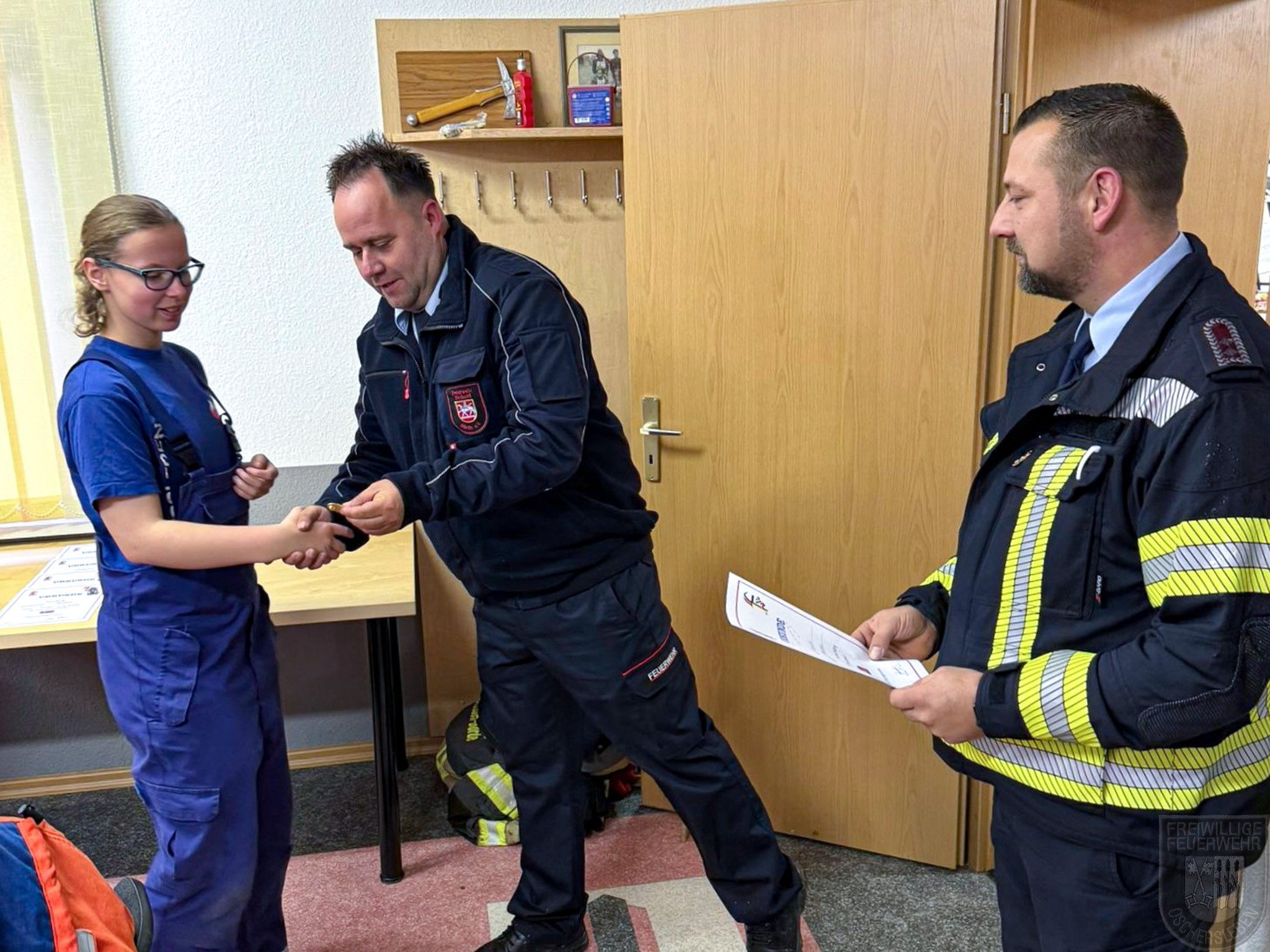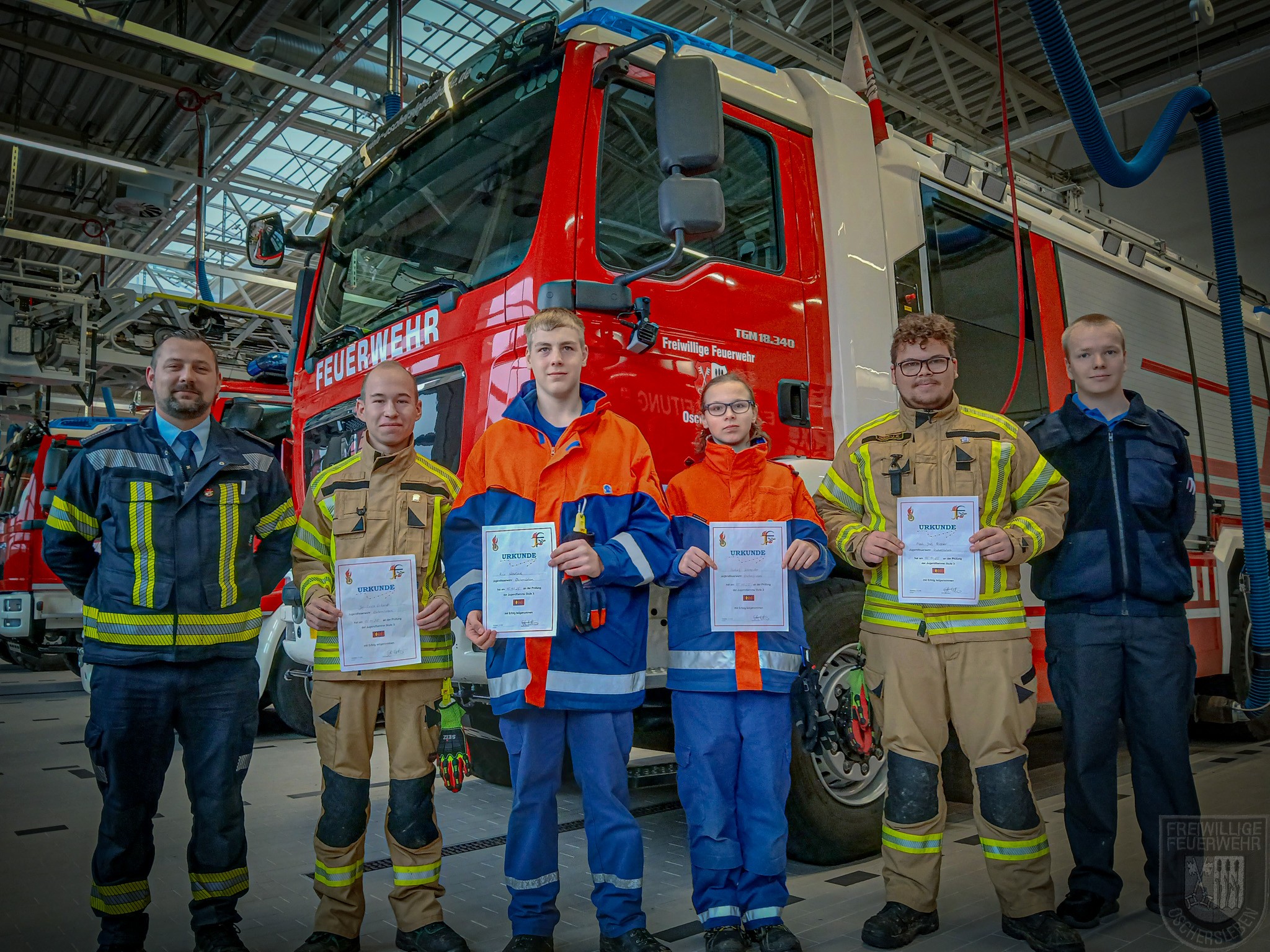 Alle Teilnehmenden meisterten die Aufgaben erfolgreich und konnten ihre Abzeichen und Urkunden in Empfang nehmen. Wir gratulieren unserer Kameradin Isabel, sowie unseren Kameraden Rico, Noah Joel und Jan Luca herzlich zur erfolgreichen Teilnahme.